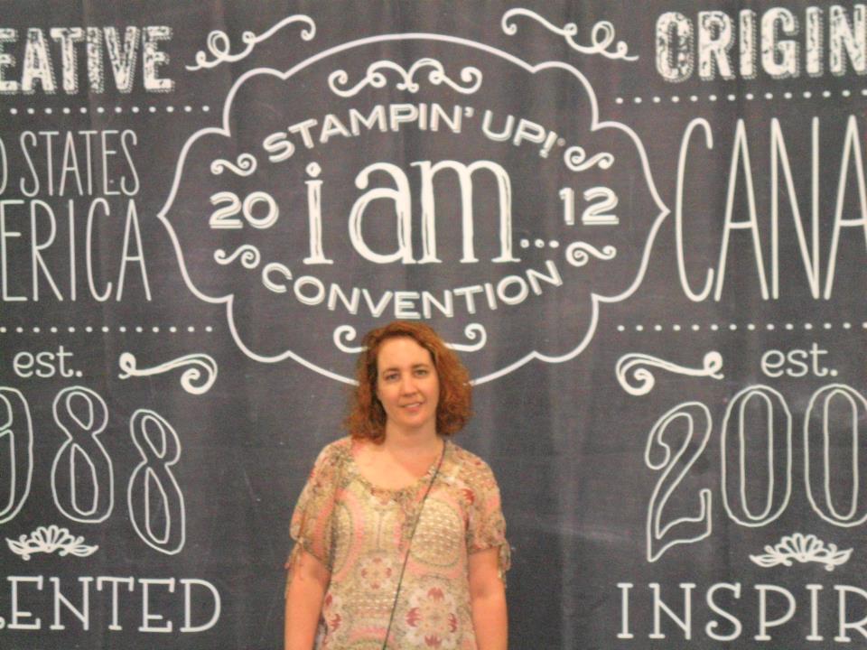This photo is obviously from the 2012 Stampin’ Up Convention… I was standing in front of the picture wall where the SU president and co-founder, Shelli Gardner, usually sits for meet and greets. While we didn’t get to chat with her on this occasion it did make a great place to pose in front of the theme of this year’s convention, which was “I am.”