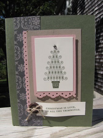 Fall also means that it’s time to start planning for the holidays… it’s never to early to start, you know! This card here is a sample from one of my upcoming holiday card classes. The first one is on Wednesday, Sept. 29. There’s still time to RSVP if you’d like to come … just e-mail me ASAP. It will be held at the Chatham Community Center from 6 to 9 p.m. Each guest makes 10 cards (2 each of 5 designs) for $18… and a head start on the holidays… priceless! 🙂