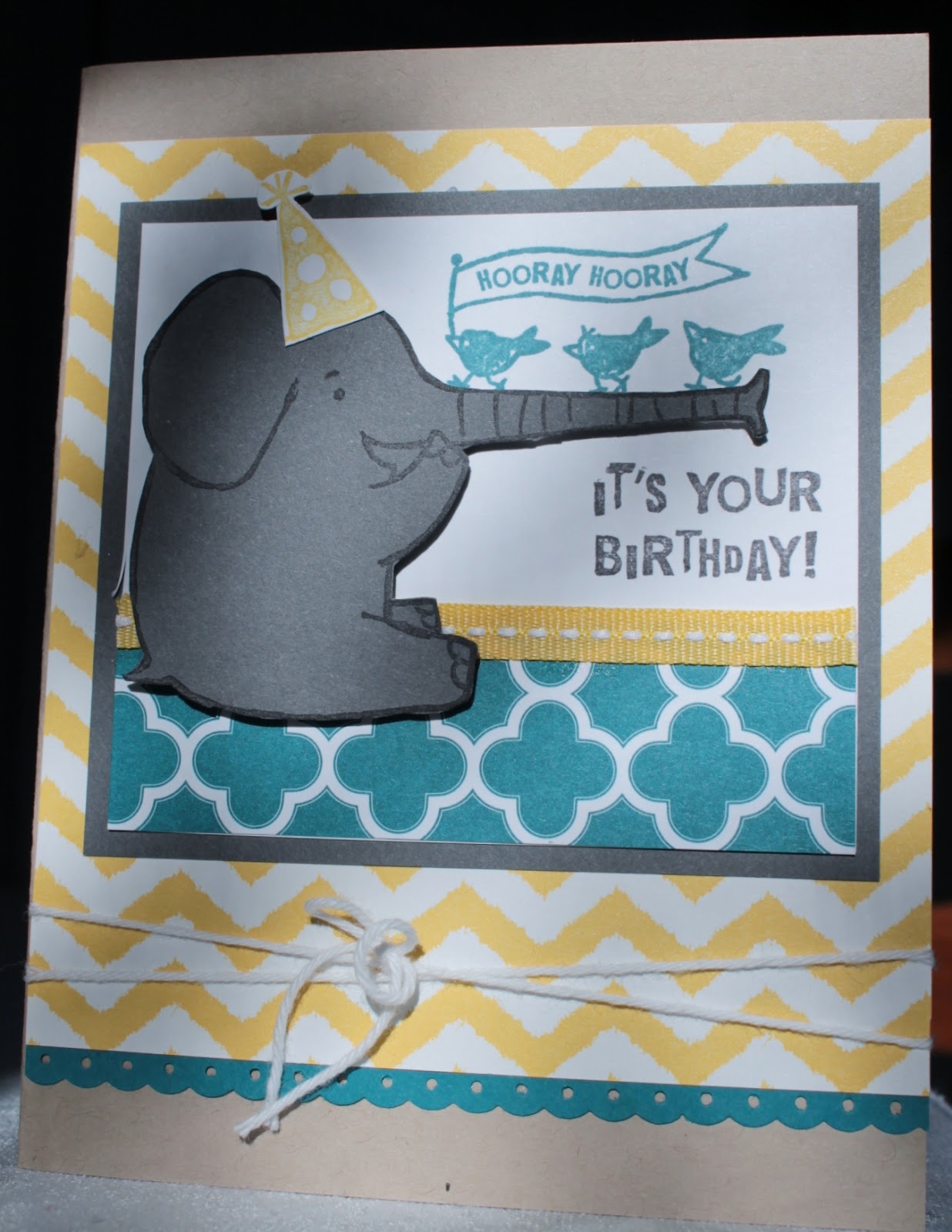 This card is one of the four projects going out in my Stamp Club To Go kits this month. The lucky ladies receiving this “happy mail” will get pre-cut supplies and product (including the adorable Henry Says stamp set) to make four projects using the adorable “Henry Says” stamp set. Next month, four more projects and $30 more dollars worth of product. Third month? Same thing! Such a fun way to paper craft — it’s a no-brainer!