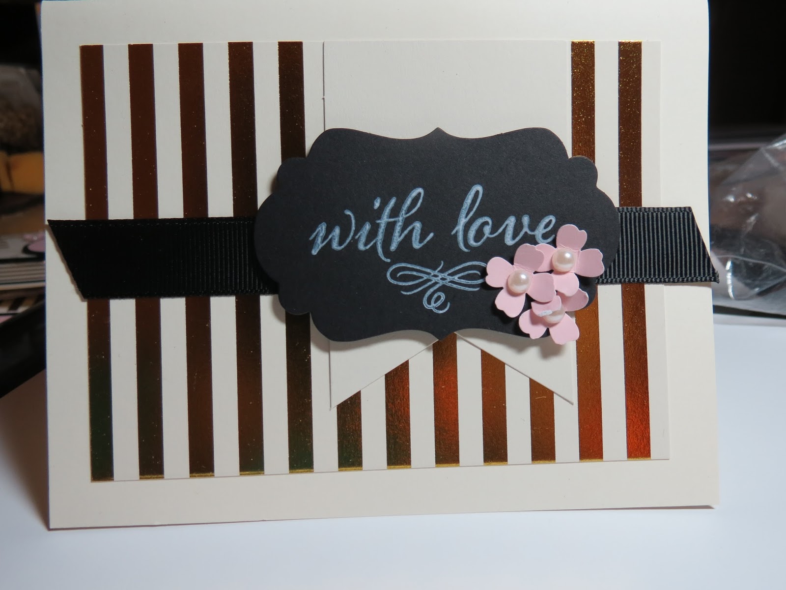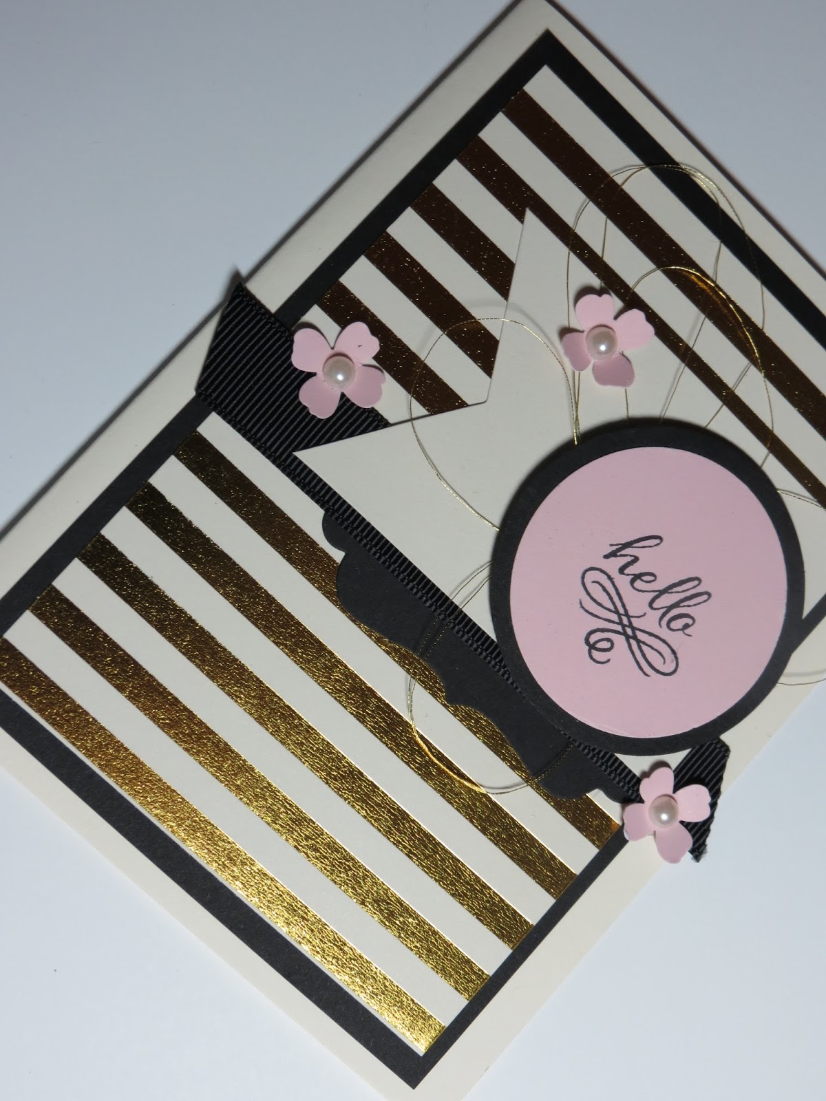 I broke out my gold embossing powder for the card above… just rubbed my versamark along the edge of the basic black cardstock, sprinkled with gold embossing powder and heat set. Instant glam!
