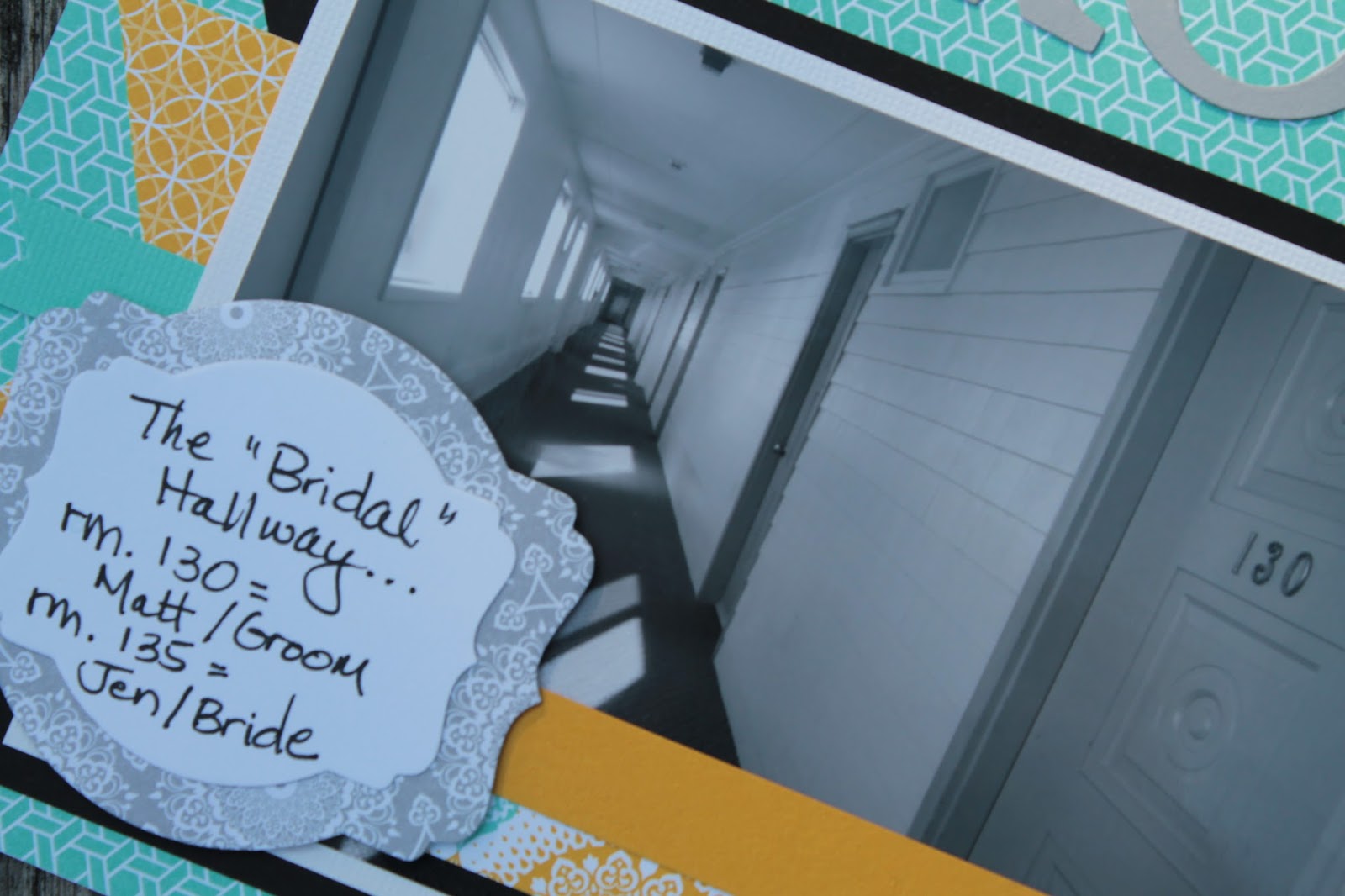 I do have some other pages to share with you from my wedding album… including some fun interactive ones… I have to spread them out, though, since I only have a handful and after creating 13 pages at a scrapbooking weekend in June — I haven’t been able to scrapbook again since! Time to put that on the calendar… in fact, my next Top Five Tuesday will discuss exactly that — how to make time to scrapbook (mostly for my own good — but I thought some of the ideas might help you, too!).