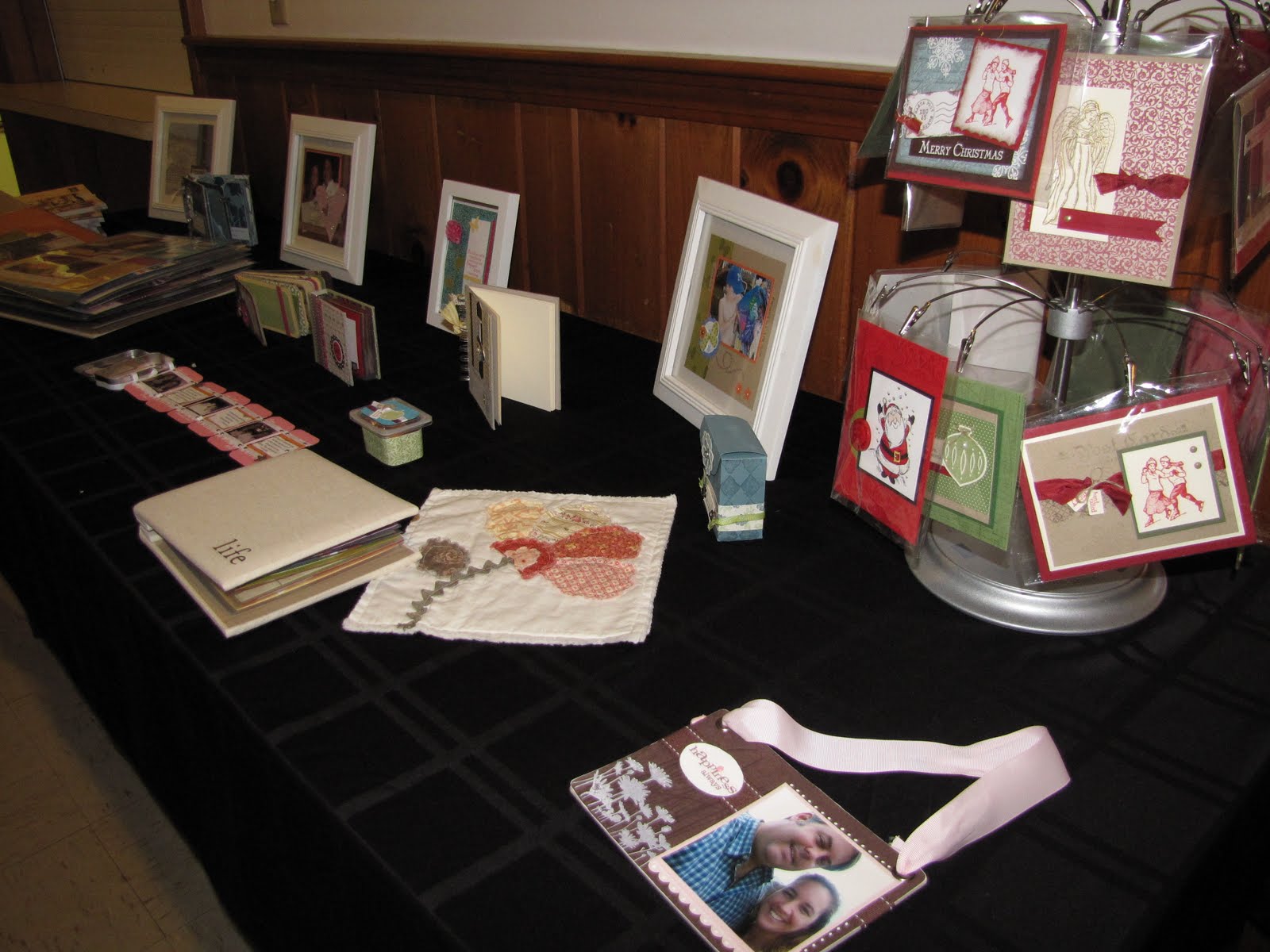 I had an inspiration table with a few different projects and two scrapbook albums for ideas. I also had a sale table with lots of retired product and paper available (no picture) and we had a yummy lunch of roll-up sandwiches, Ceasar Salad, Cape Cod Potato Chips and Soda…. For dessert we had cookies and lots of this….