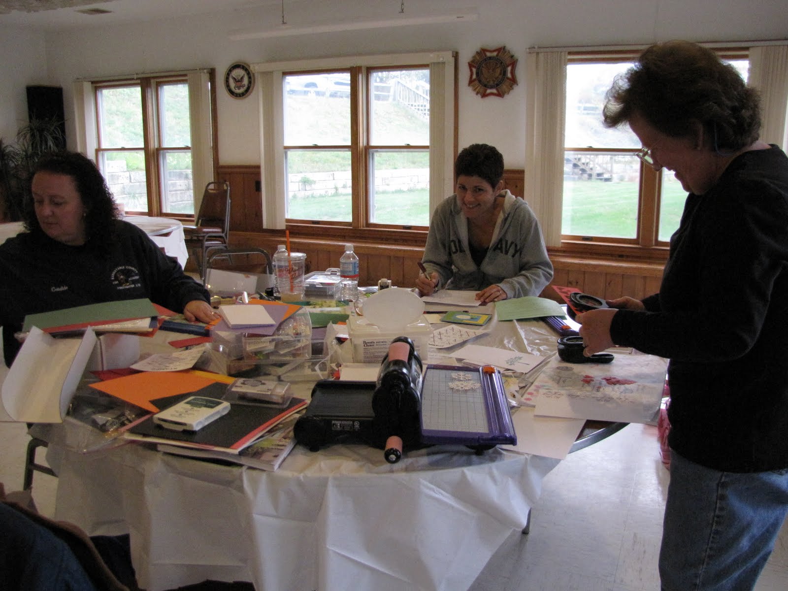 Now as for the other three days that I didn’t post… well, I was very busy getting ready for my first crop! I had 10 croppers at the Chatham VFW on Sunday and we had great fun! Lots of games, challenges, stamping, Big Shotting (I think I made up a new verb…) and, of course, scrapbooking!
