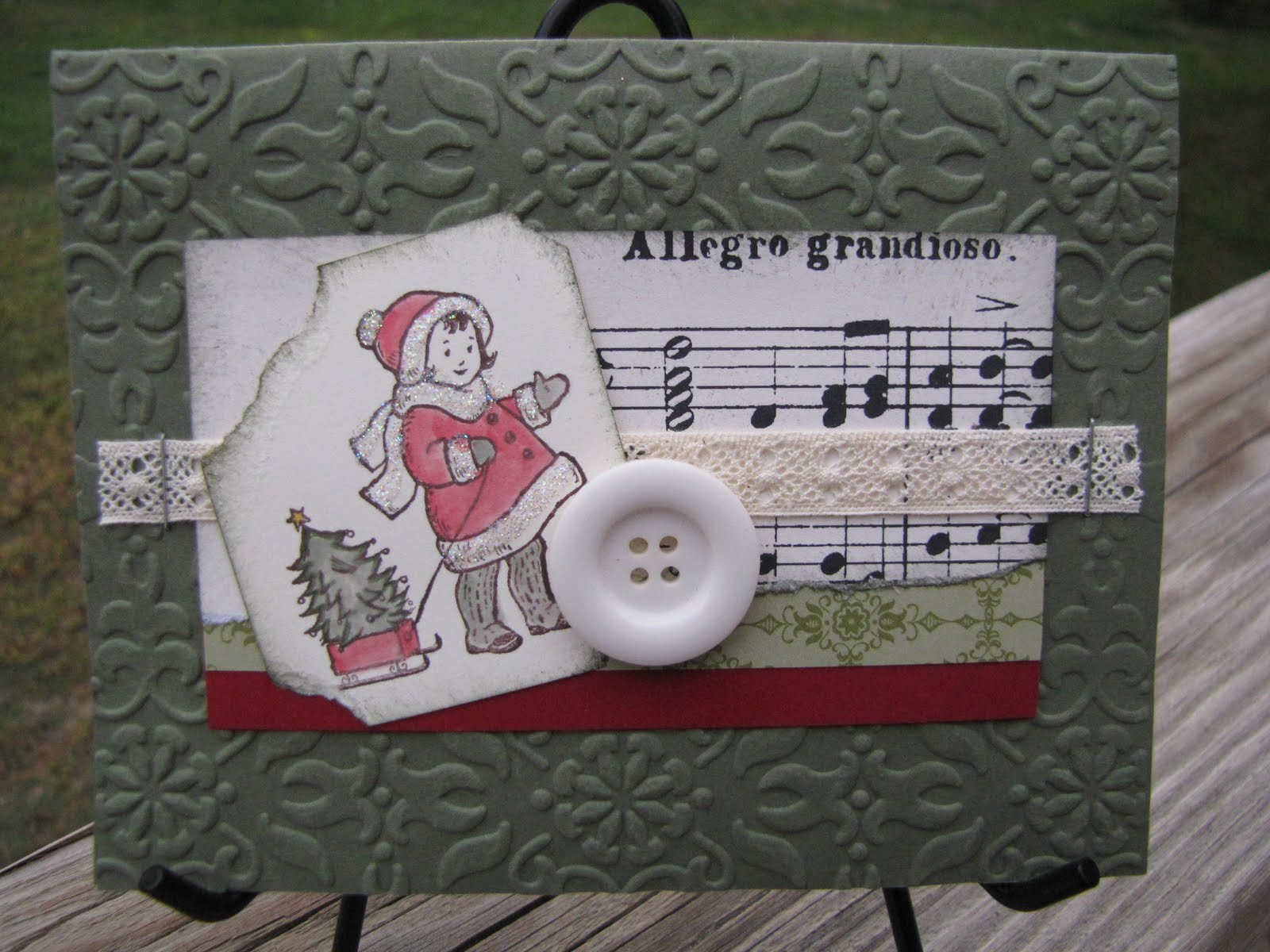 This is a preview of one of the cards we made at my first class (the cards will be different at each class). This little cutie girl was my favorite card of the last class. It’s always funny because my favorite card is never the class favorite. In fact, the class favorite from the last round almost got cut from the line-up because I wasn’t really a big fan. I decided to keep it in though because it was a different style (really bright and festive). I’ve been more into the vintage style lately. I’ll show you that card later this week.