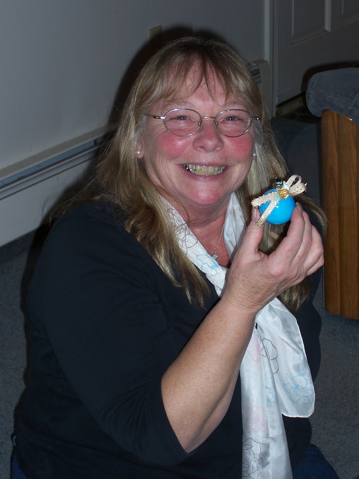 Here is Missy with her handmade ornament by Jill (p.s. check out her hand stamped scarf):