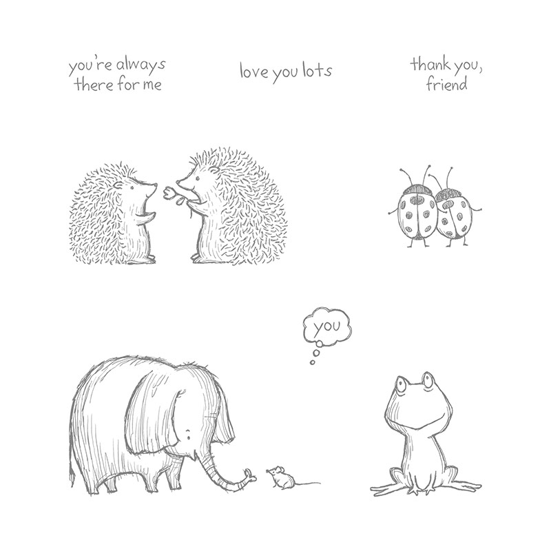 Today we are all sharing our “love.” Theme for this month’s blog hop is “Love is in the Air.” So I choose to do a card using the adorable little hedgehogs from the Love You Lots Hostess stamp set. These sets are only available when you host an in-home class or event or if you place an order of $150 or more (and let me tell you, with the amazing Sale-A-Bration options right now, there’s no shame in that!).