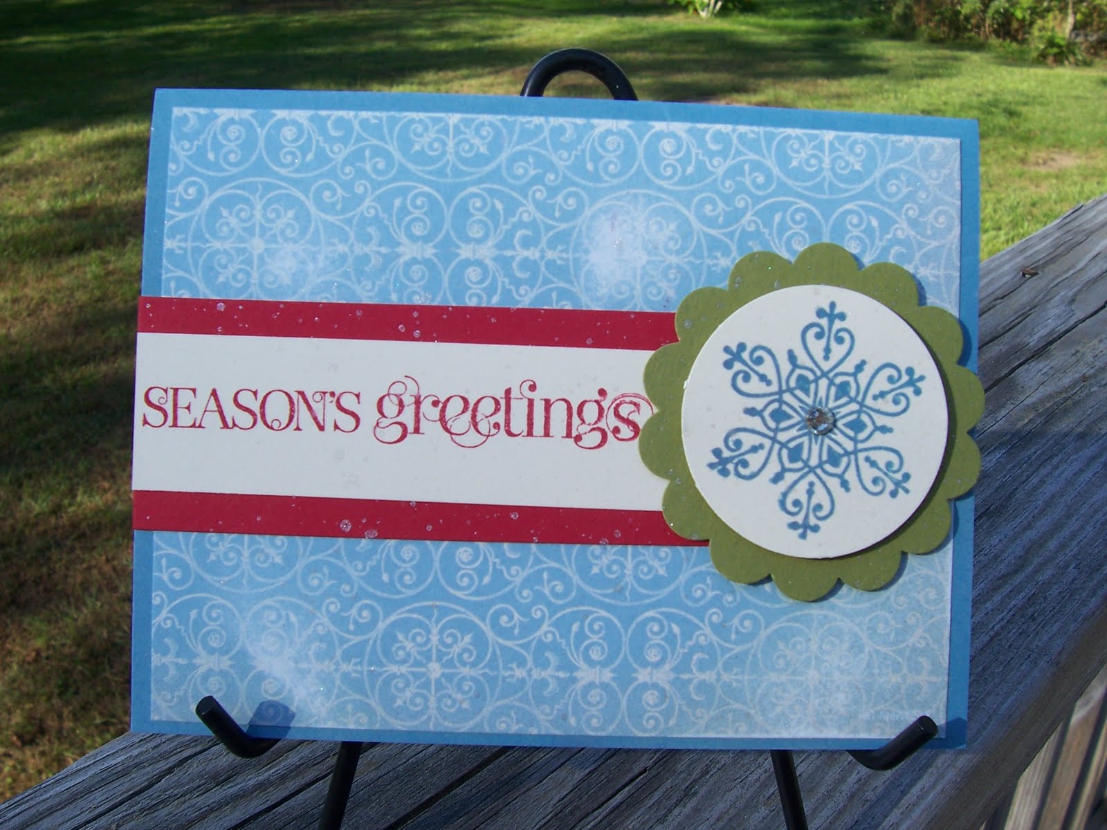 It’s full-on holiday preparation time over here in crafty land. I’ve got two card classes this week, plus a make and take event. Then there’s a holiday gift class and a bags & tags class before I take a break for a little while for the holiday. Don’t worry though, I won’t be stopping with the stamping. Come Dec. 1, I get to pre-order some fun new goodies from the new Occasions Mini Catalog and I plan to make all sorts of fun new things with my new toys — I first have to narrow down my wish list to a more reasonable amount! Not an uncommon problem for me these days… the new products Stampin’ Up is coming out with is really making that a challenge!