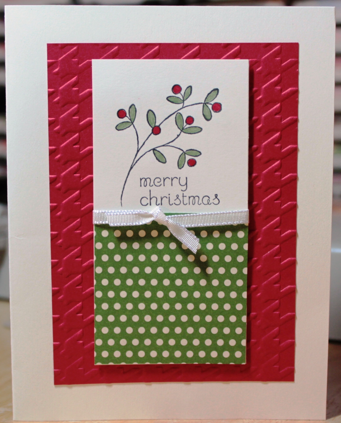 Hello there. Happy Tuesday and welcome to my very first Top Five Tuesday! I thought I’d start out the season by showing you my top five favorite Christmas cards that I made for this year. I must note however, that I don’t think I can find them all (!) — there were 20 different designs that I made for card class and I could only find like 12 of them… also as another note two of my favorite cards are also the new designs I made to send to family and customers for the holiday… so while they are my favorites, I didn’t want to show you and spoil the surprise! I’ll definitely show them after I get them in the mail, though, Ok?